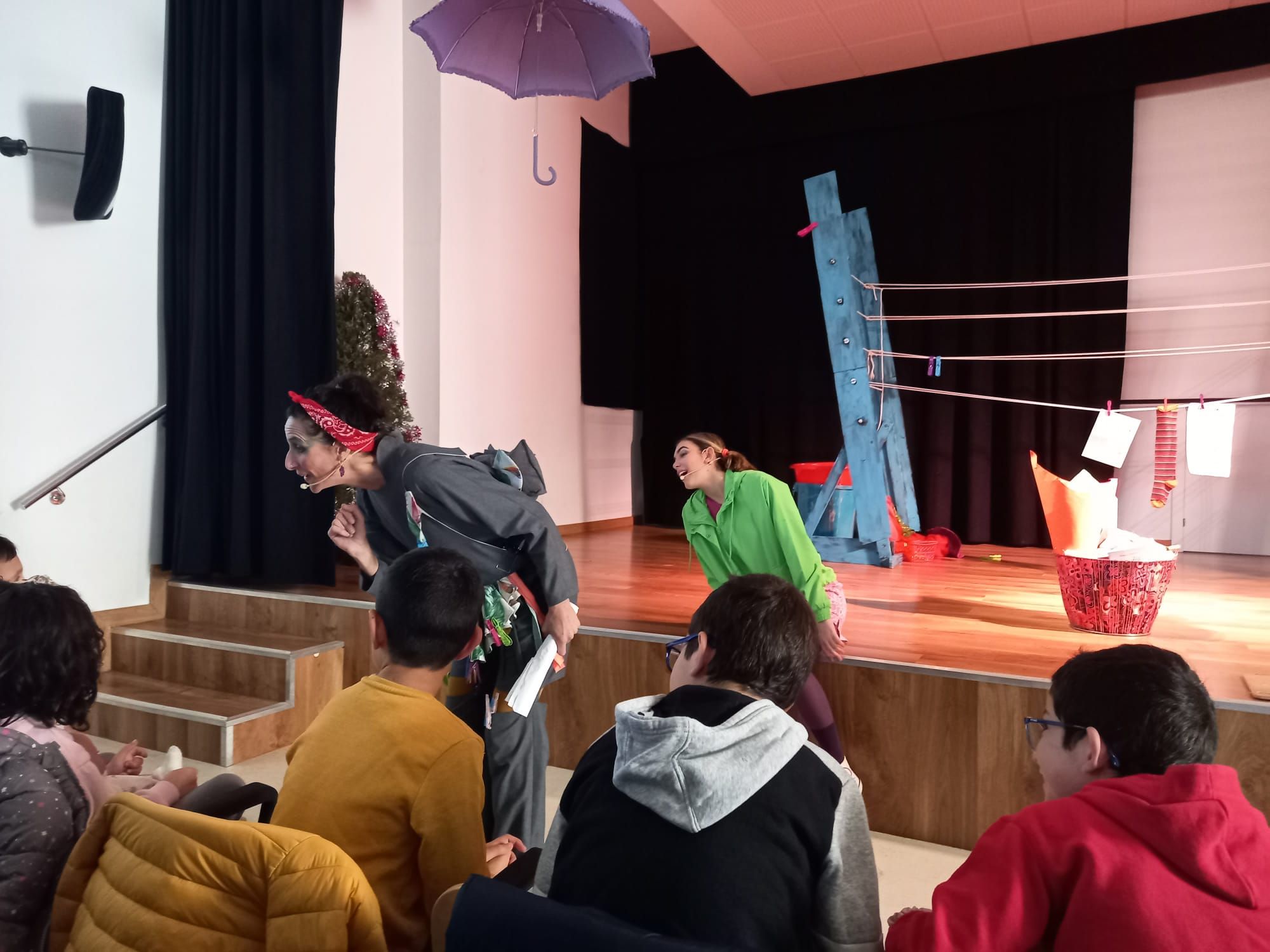 Es un espectáculo en clave de clown, en el que los personajes, unos peculiares vecinos, no terminan de ponerse de acuerdo para hacer uso del tendedero de su azotea. Sobre todo, cuando Tini, una vecina demasiado joven para subir a la azotea, se ha empeñado en tender libros, poemas y palabras. El resultado es un divertido y animado enredo en dónde el público ayudará a Tini a convencer al vecino cascarrabias de que las palabras son una llave mágica para alegría y la convivencia.